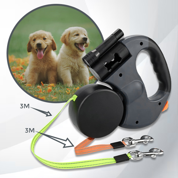 🐾 Разхождайте две кучета едновременно без оплитане на поводите! 🌟 Вградена LED светлина за по-добра видимост в тъмното. 🛠️ Издръжлив материал за дълготрайна употреба. 🎯 Дължина на всеки повод: 3 м, товароносимост до 20 кг на куче.